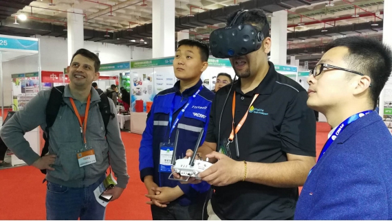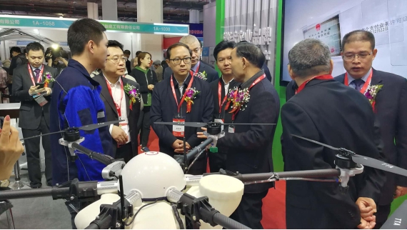 参观领导在天途航空展位观看经典M6E系列农业无人机