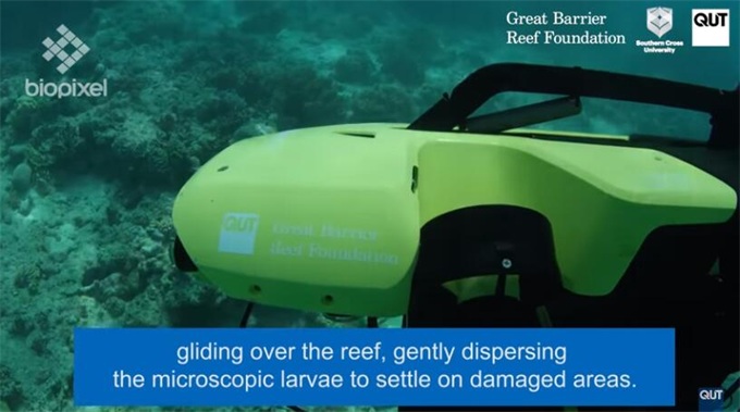 科学家正在使用水下无人机作为重建大堡礁任务的一部分。在昆士兰科技大学(QUT)和南十字大学(SCU)的研究人员之间的合作中,幼虫机器人(larvalbot)能够将珊瑚幼虫(coral larvae)精准地送到必要的区域进行繁殖。