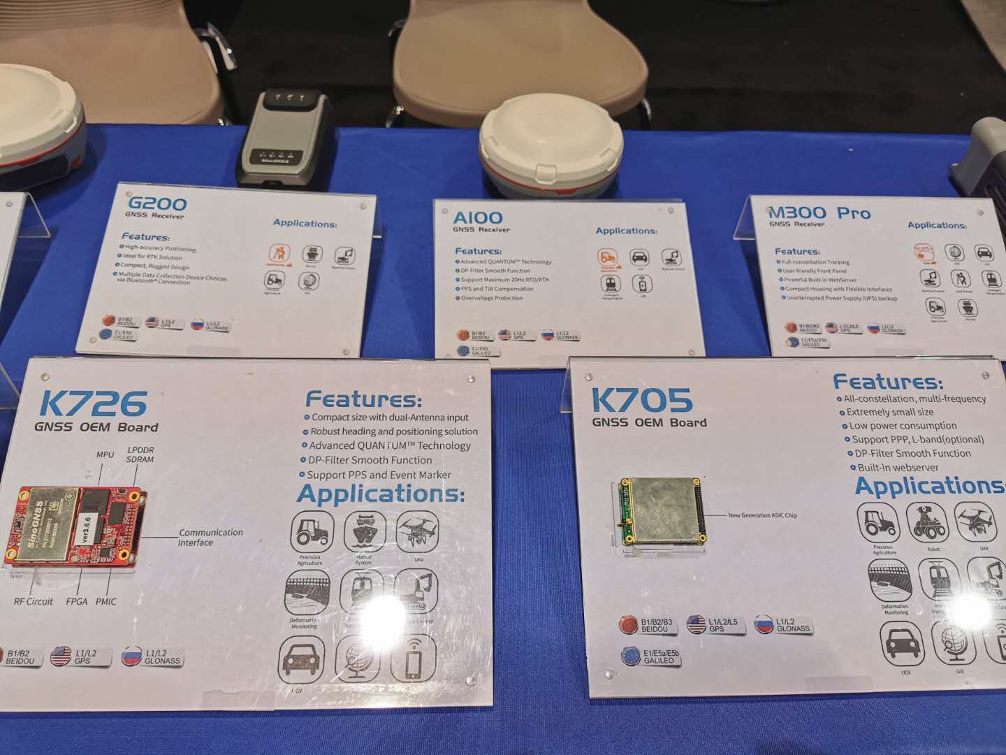 在本次展会上,司南导航带来了K705 GNSS板卡、K726 GNSS板卡,K705 GNSS板卡是司南导航自主研发的一款紧凑型高精度定位板卡,满足全系统全频点导航卫星系统板卡需求,支持L-band和北斗全球信号的接收,可增加捕获加速模块,优化板卡首次定位时间。