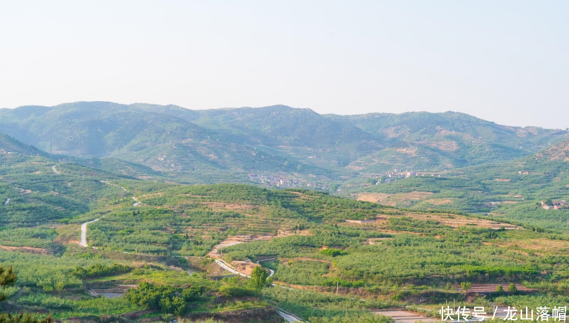 现在正是苹果等果树结果的季节,漫山遍野的果园里绿意盎然,生机勃勃,孕育着满满的希望。