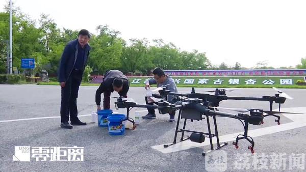 银杏超小卷叶蛾,是一种全变态害虫,独爱银杏树,对银杏树的危害很大。它分布于我国广西、浙江、安徽、江苏、湖北、河南等地,每年的四五月份,是银杏超小卷叶蛾活动的活跃期,5月3号,泰兴市森林植物病虫害防治检疫站工作人员放弃休息时间,来到江苏泰兴国家古银杏公园,首次采用无人机生物农药防治银杏超小卷叶蛾。