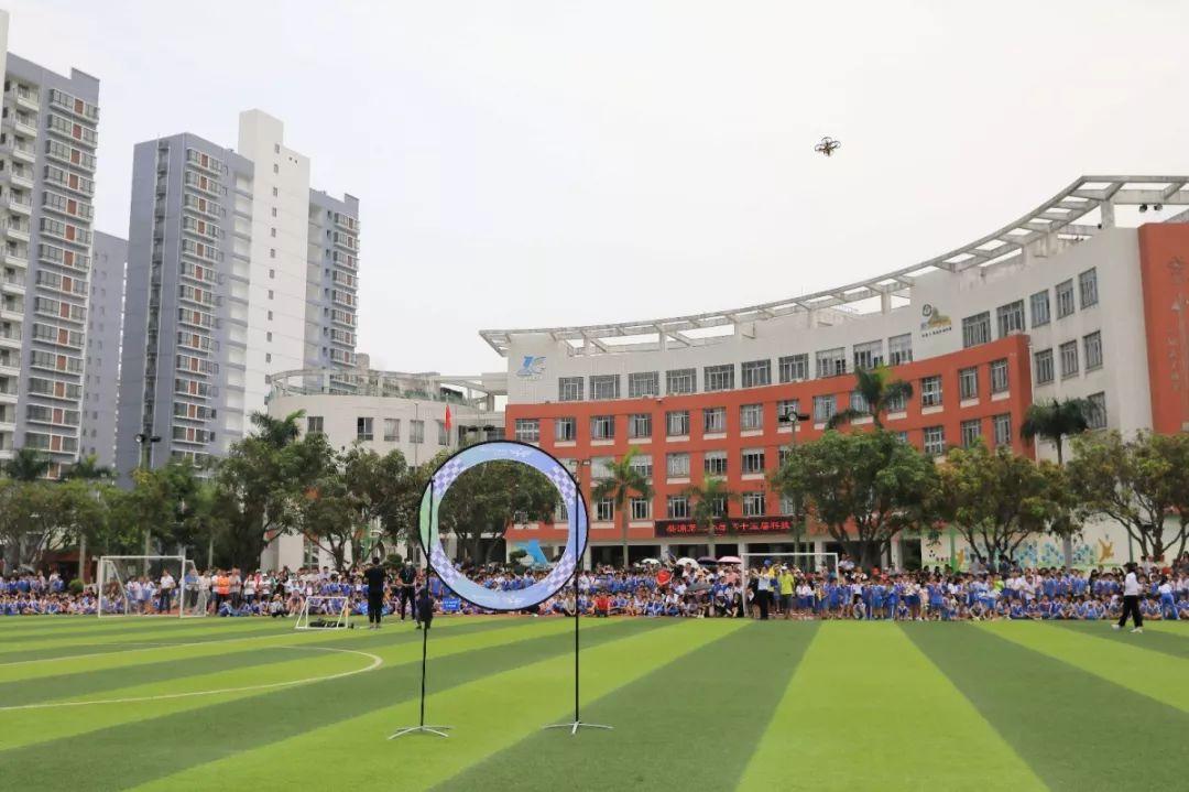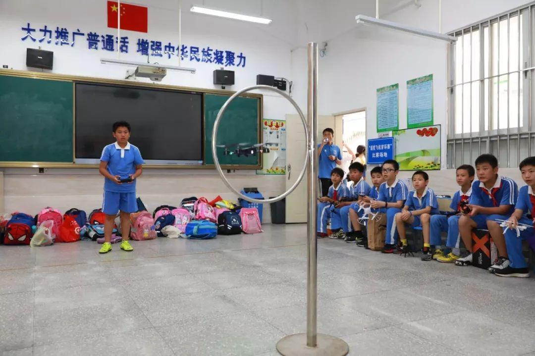 同学们对无人机的操控也不在话下,只见他们从容不迫地起飞,准确地穿环而过,赢得热烈的掌声。