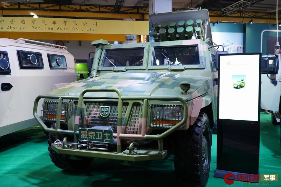 作为此次展会的主要参展商之一,燕京汽车携带了多款新型轮式装甲战术车辆亮相。除了此前展示过的“卫士”系列防护性突击车、首长指挥车、侦察指挥车等战术车型外,此次展会上最引人注目的是一款多用途巡飞器发射车。这款战术车辆以“卫士”突击车为基础,采用弹车一体化设计,加装了分组式气动发射装置,能够以发射管的方式投放无人侦察机。