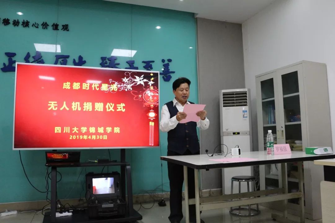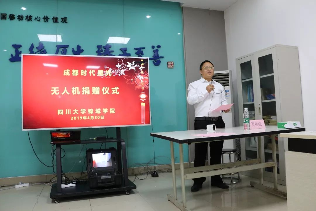 4月30日下午15时30分,成都时代星光科技有限公司无人机飞行设备捐赠仪式在四川大学锦城学院信义大楼举行,公司向川大锦城学院捐赠了价值50万元的无人机飞行设备,本次参加捐赠仪式的人有成都时代星光科技有限公司彭彦平董事长、四川大学锦城学院邹广严院长等
