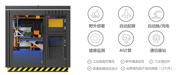 1、 自动机场就近部署在作业现场,无人机存放于机场内;