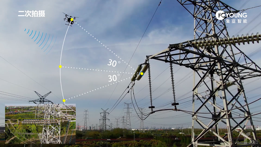 复亚智能首创的端云互动二次拍摄识别技术,推出更智能的全自动无人机电力精细化巡检解决方案。巡检过程中无人机与云端进行实时互动,当诊断到目标可能存在缺陷时,机载AI实时接收云端信息并自主调整飞行航迹、飞行姿态、云台参数,以此获得更高质量的巡检数据提升AI诊断识别率。