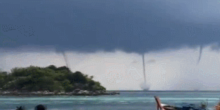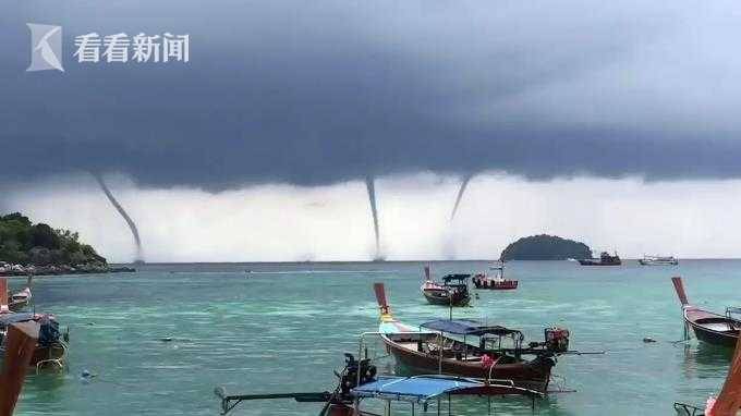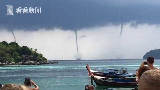 位于泰国最南边的丽贝岛(Koh Lipe)有着“小马尔代夫”称号,被不少人盛赞是泰国最美岛屿。11月25日其外海安达曼海(Andaman Sea)海面出现4个水龙卷,上端与雷雨相接,下端直接延伸至水面,罕见的景象让游客又惊又喜。