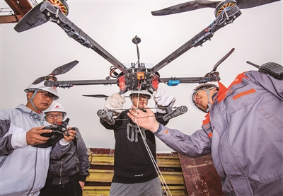 “塔顶风速达到7级,目前不适合飞行。”“如果降到4级,就立即试飞。”当日上午9时许,施工人员启动无人机起飞。当无人机飞行到半空中,出现左右摇晃现象,施工人员立即采取返回措施。