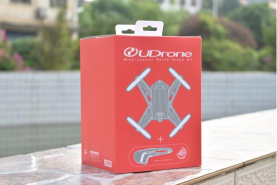 UDrone意念无人机采用多层包装设计。外层的纸质较薄,鲜红底色加产品简易图的风格很简洁。由于意念机和无人机并不是捆绑销售,所以外层的包装只是对于选择套装的用户提供的一个组合携带方式。