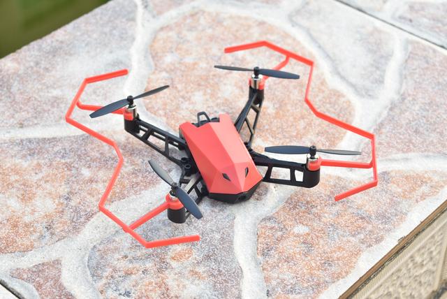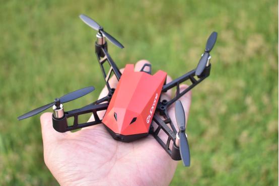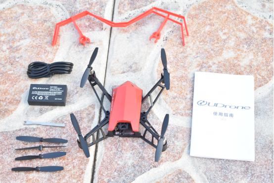 首先我们来看看UDrone无人机。这款产品属于轻便型四旋翼飞行器。机身主体采用工程塑料材质,多菱形的刚毅外形加上卡通形象设计,既充满科技感又具有亲和力。