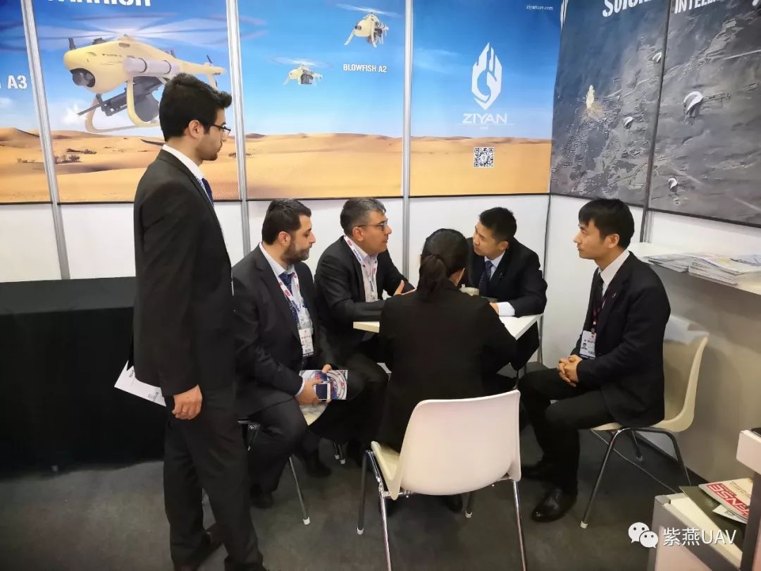 「紫燕ZIYAN」在2年前首次参加IDEF'17,以飞行平台技术给全球防务行业留下深刻印象后,今年再次征战土耳其国际防务展IDEF'19,并向全球防务行业展示了最新的“空中战士”河豚系列武装无人直升机,以及“智能集群”自主攻击等前沿技术,再一次用创新技术在IDEF'19 吸引了各国的关注。