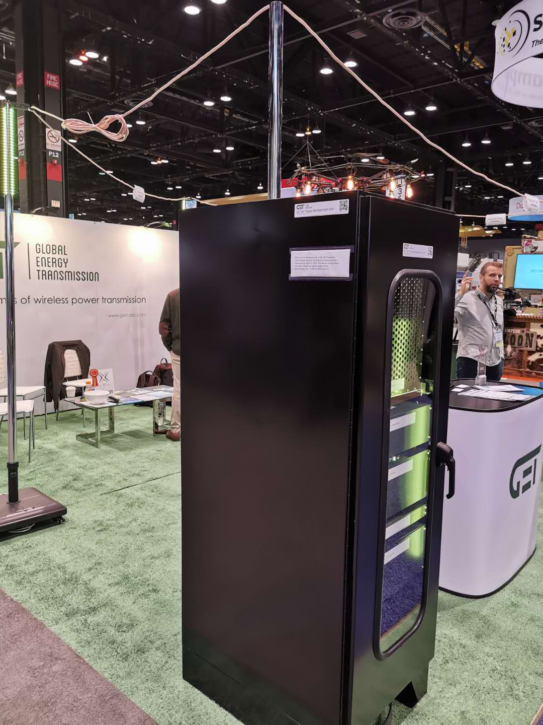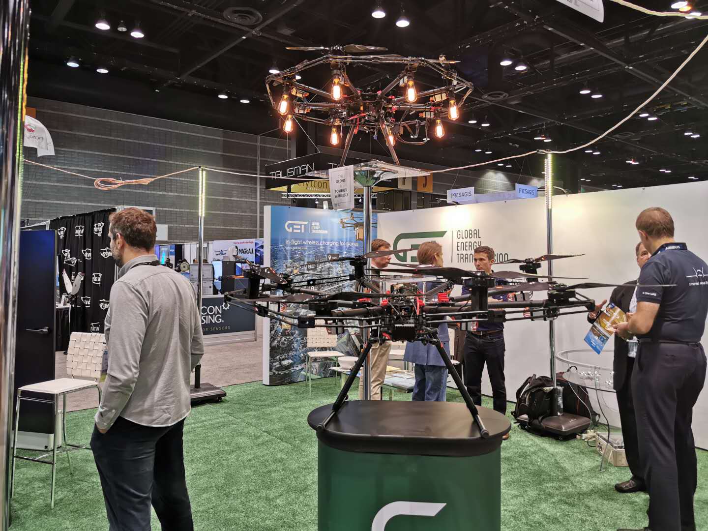 在2019美国国际无人系统展暨无人机机器人展上有很多无人机相关的上下游制造商,每年都有诸多新的产品亮相展会,下面给大家介绍一家无线充电的企业-GET,该设备可以有效的解决无人机更换电池等问题做到无人化的目的。