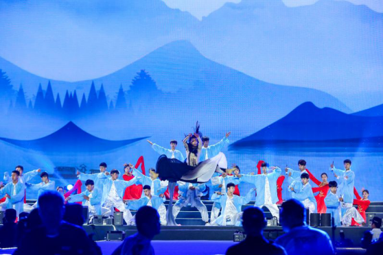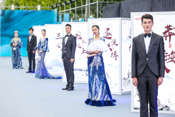 一曲国风走秀,专业模特用东方韵味,展现意象之美,表达古道柔情。表演以山水为载体,秉承生态环保理念,其空灵悠远的乐章与大秀的神韵相得益彰。