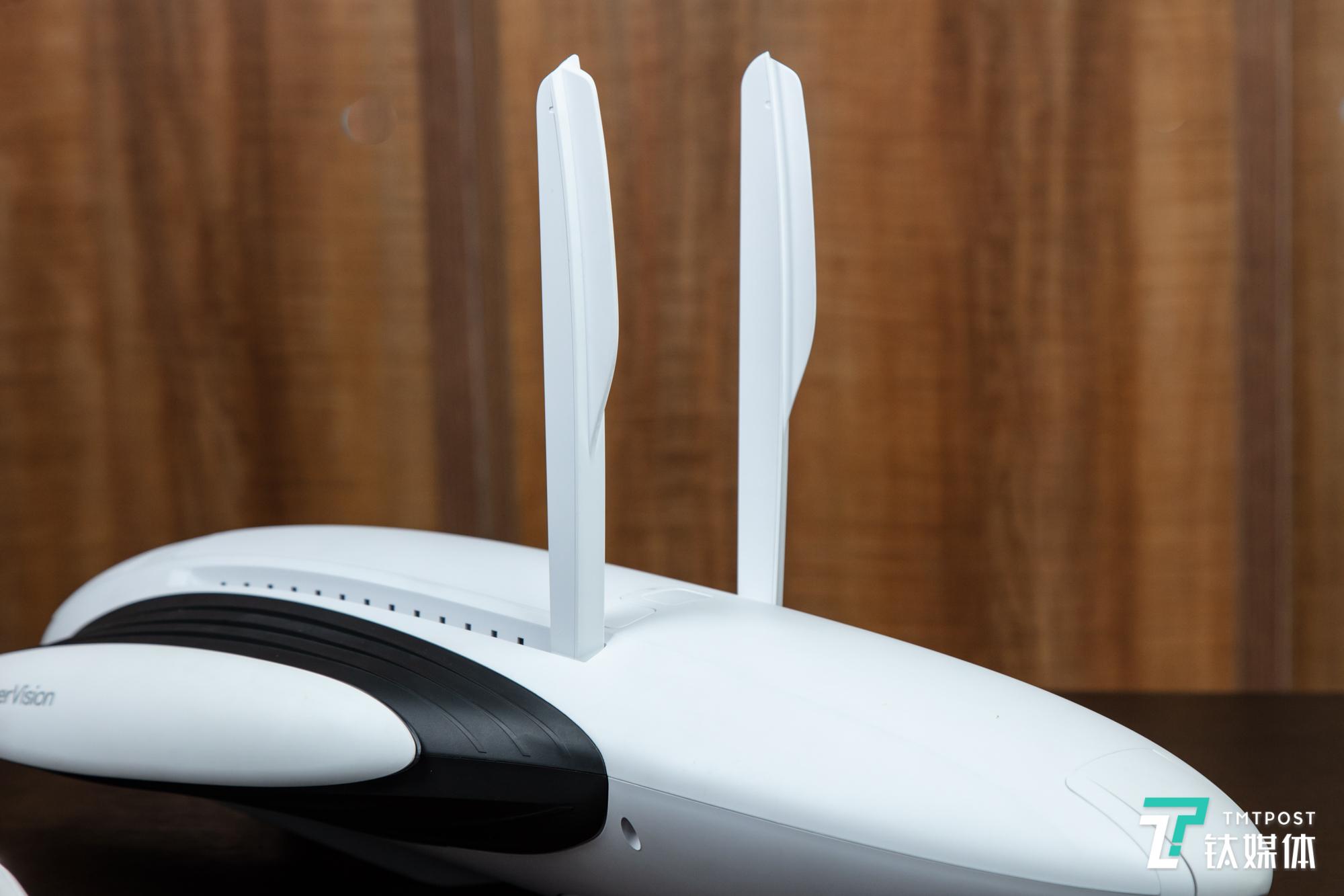 说起整个无人机,最突出的部分就是它的“耳朵”了。臻迪PowerDolphin小海豚的信号接收器可以进行收折,平日隐藏在机身中,使用时将其竖起进行更大范围的信号接收。