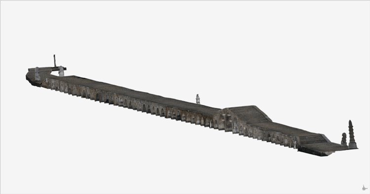 宝带桥是古代桥梁建筑的杰作,全桥用金山石筑成,长316.8米,有53孔,是中国现存的古代桥梁中最长的一座多孔石桥。2016年,市文保所委托市测绘院对其进行数字化采集。对桥梁水下结构,传统的围桩排水测量方法需要两个多月,在船只如梭的大运河中更是难以实施。工作人员巧妙地将多波束测深系统这一水深测量设备用在这里,仅仅3天,就实现了宝带桥水下结构的高精度、自动化测量,犹如进行了一次精准的“CT扫描”。这座汇聚古代工匠智慧的大运河水工遗存世界文化遗产,也首次将现状全貌展现在了世人面前。