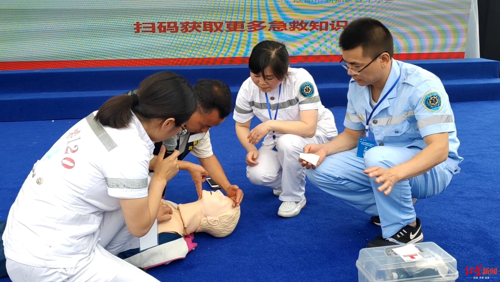 来自医院的急救人员,将心肺复苏术的标准流程,现场教给市民们。如何利用身边的消防器材自救,应对不同的火情如何处理,则由消防员们现场演示,并与市民们互动。最吸引小朋友们的,则是充气“小黑屋”,里面漆黑一片,模拟充满浓烟,可让体验的小朋友们感受在烟气中逃生的感觉,提高逃生技能和心理素质。