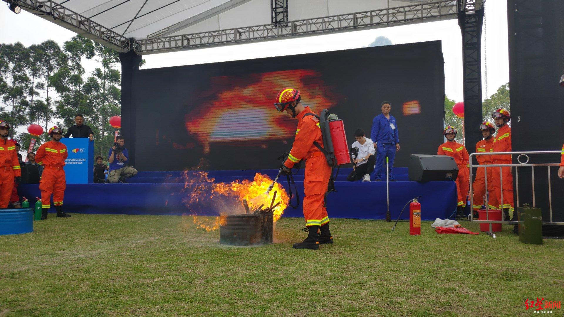 2019年5月12日是我国第11个全国防灾减灾日,主题“提高灾害防治能力,构筑生命安全防线”。今日(5月11日)14:00,2019年全国防灾减灾日成都主题活动在新都区体育中心举行。活动集中展示了成都当前的应急装备,让市民参与其中互动体验,了解自然灾害重大风险防范化解和防灾减灾救灾知识,消防员们也在现场演示应急技能。