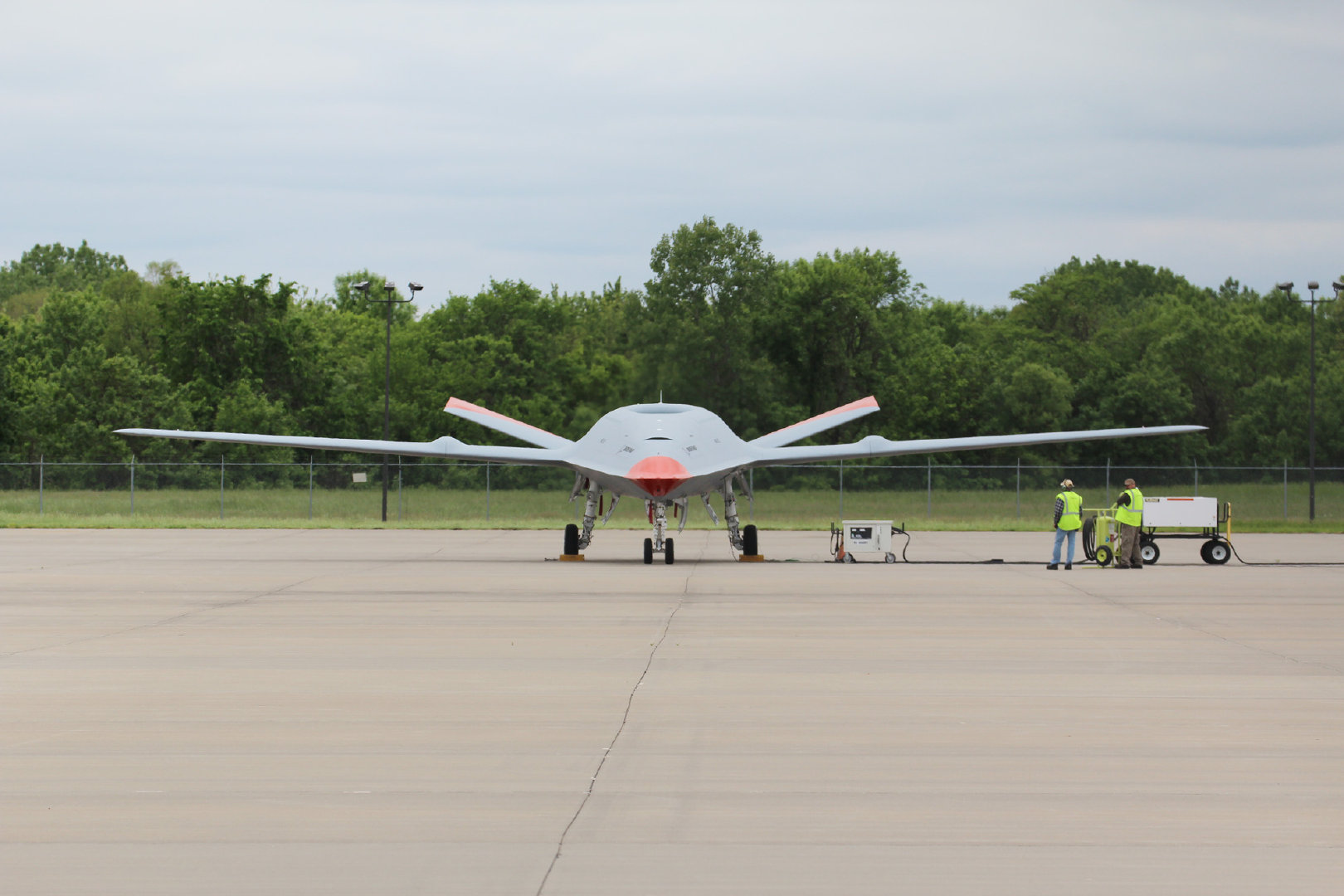 美国波音公司研制的MQ-25“黄貂鱼”无人舰载加油机近日已经运抵与伊利诺伊州斯科特空军基地相连的圣路易斯机场,开始进行一系列的地面测试工作,为首次试飞做好准备。