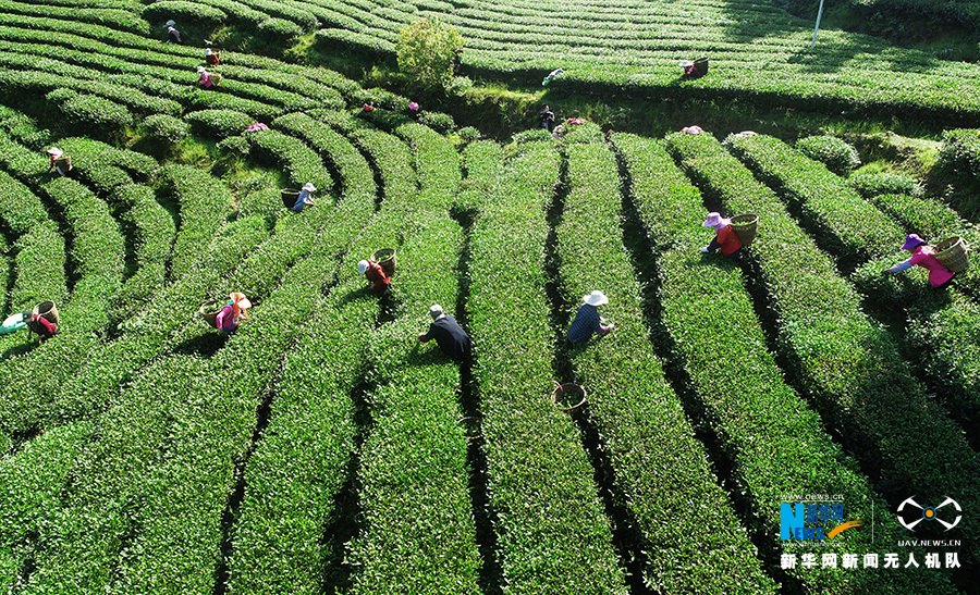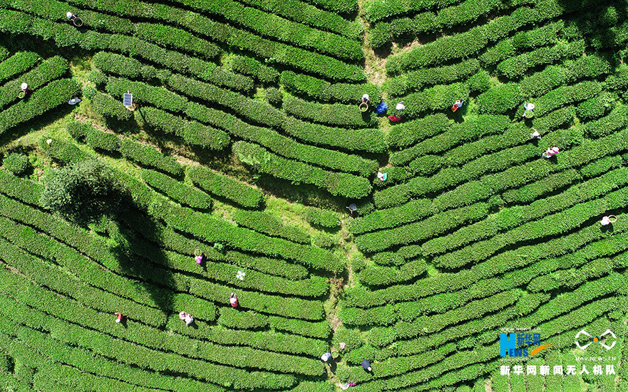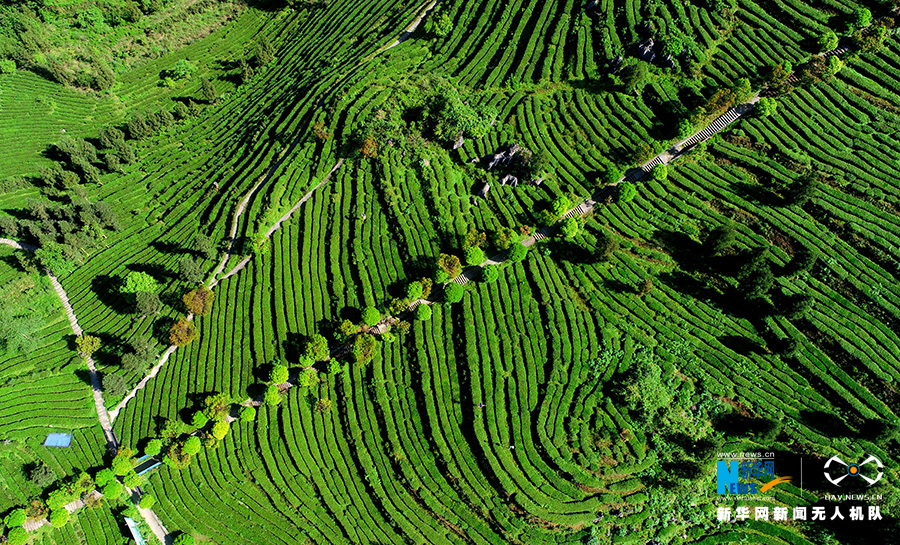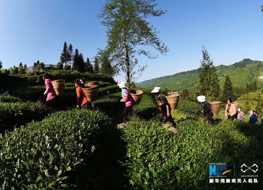 近段时间,重庆市酉阳土家族苗族自治县木叶乡木叶村的3000余亩乌龙茶进入新茶采摘期。据了解,茶农采摘的鲜叶,经过杀青、摊凉后,再用机器进行炒制,香气四溢的乌龙茶便新鲜出炉。目前,该县生产的乌龙茶主要销往福建、广东、上海、成都等市场。图为无人机5月11日拍摄的酉阳县木叶乡乌龙茶基地。