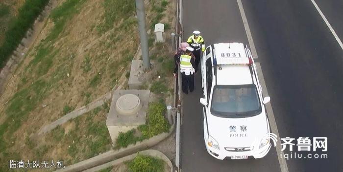 民警介绍,5月13日下午16时许,聊城高速交警临清大队路况巡查机在巡航过程中发现,一位老人正行走在高速上。此时路上车来车往,非常危险。