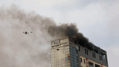 (图:场面震撼,国飞无人机与消防队员共同灭火)