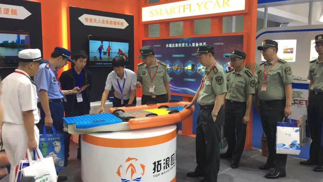 拓浪应急以“新一代的水域无人智能应急救援装备”为主题,在现场展示了:快速无人救援装备“智能动力救生圈”;能在水域上进行大范围巡查、救援、追踪功能的“中型搜救无人巡逻艇”;可在水中和陆地进行抢险救援的“水陆两栖抢险救援车”等一系列的智能应急救援无人装备。