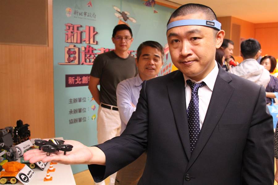 新北市劳工局长陈瑞嘉现场体验脑波控制无人机,只见陈瑞嘉神情专注,无人机随即起飞,再透过轻微的头部摆动,还能调整飞行方向,让旁人啧啧称奇。