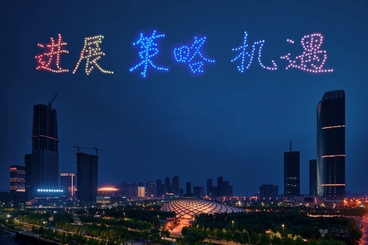 随着音乐的变化,空中的500架无人机依次组成“进展策略机遇”、“中国天津滨海”、“大会标识”,在决战世界高质量的经济发展征途中,天津抢占先机,为智能世界的探索推出了一个广阔的舞台,创建性构建前沿理念和智能领域解决方案,推动人类前进的步伐。一飞也紧紧抓住时代运转的脉搏,瞄准集群控制技术迸发,抢占集群控制技术制高点。作为该技术的重要应用领域,一飞无人机表演团队已在天津、山东、湖南、江西等10多个省市累计完成了上万架次的编队飞行表演。