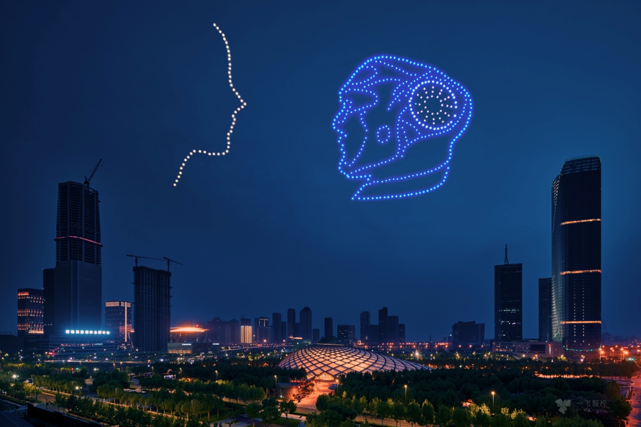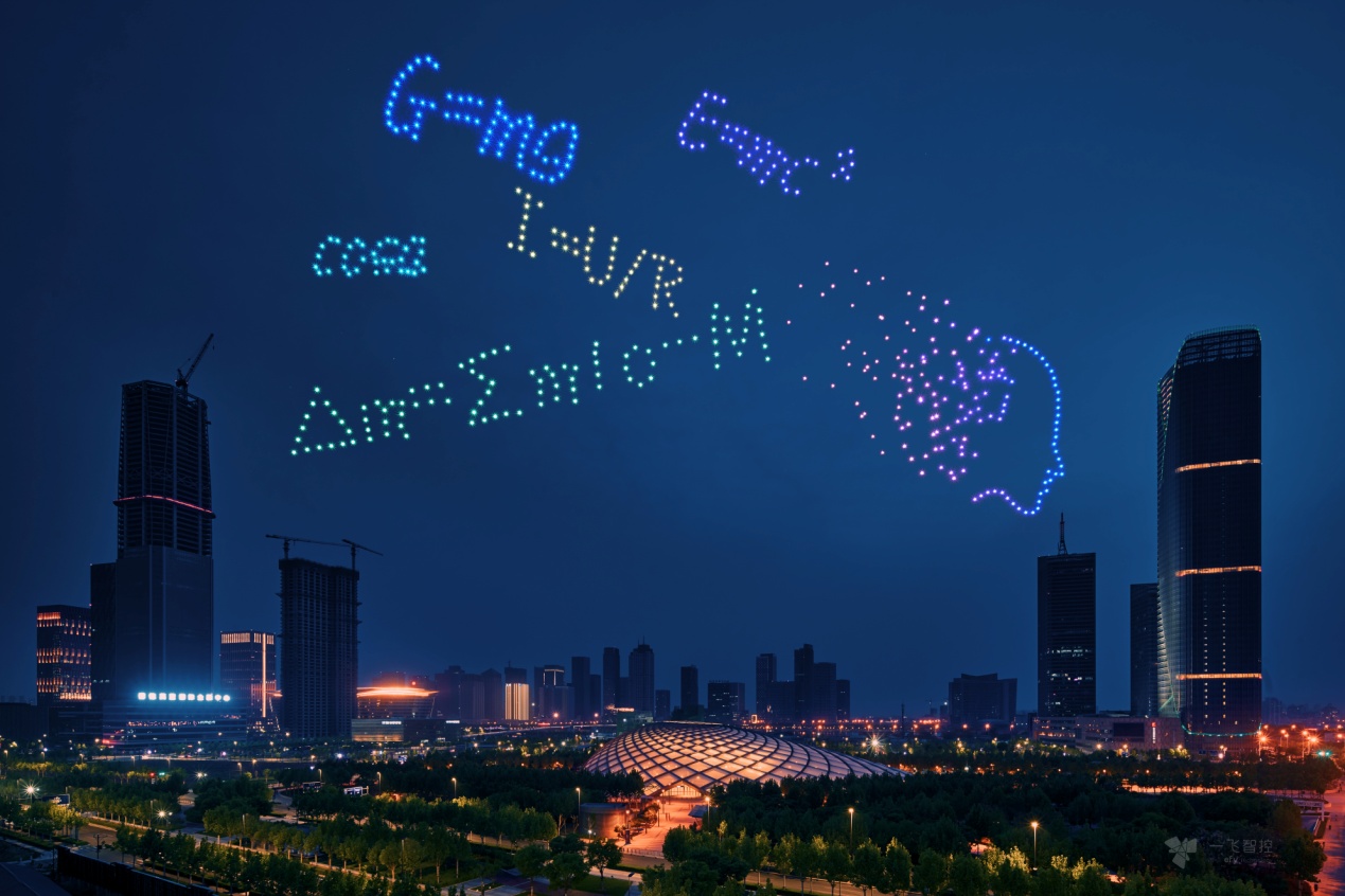 去年,一飞无人机表演团队用400架编队无人机向与会嘉宾及天津市民呈现的海鸥穿越天津之眼的画面还历历在目。今年,一飞紧贴世界智能大会主题,用科技的舞步,打造了一场盛世之景,表达对世界智能大会论坛的欢迎。500架无人编队集群在天津滨海夜空缤纷舞动,“3D互动穿越”炫技长空,组成了“科技之子向未来奔跑”、“人类与人工智能机器人对视”、“人工智能科技代码”等多组图案,给全球嘉宾们带来了一场最震撼的视觉盛宴。