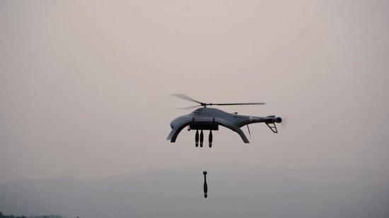 中国无人机采用了直升机价格设计,悬停状态,垂直投放迫击炮弹