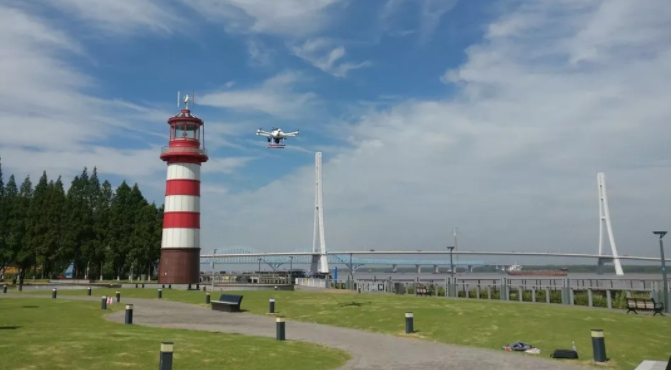 盖亚160(精英版)混动无人机在南京三桥鱼嘴公园进行河道巡查作业