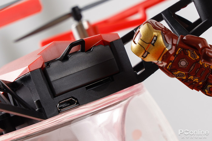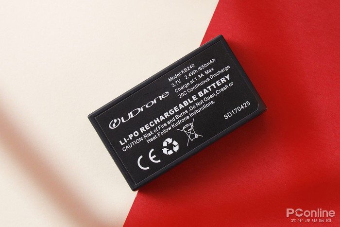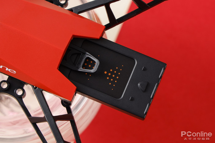 UDrone无人机后面采用卡扣式电池仓、内存卡槽和充电口,只需充半个小时电,就能玩十分钟,虽然续航有点短,但是在这个体积上拥有如此强大的性能实属不易。实际测试中,在安装螺旋桨保护罩后,炸了几次机还是毫发无损,电池没有脱落,很结实。