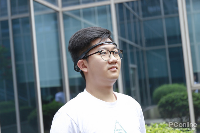 这里提一下UMind Lite意念机的佩戴方式,就像图下一样,金属电极条紧贴额头。如果有化妆的朋友,有机会影响意念机的接收信号。