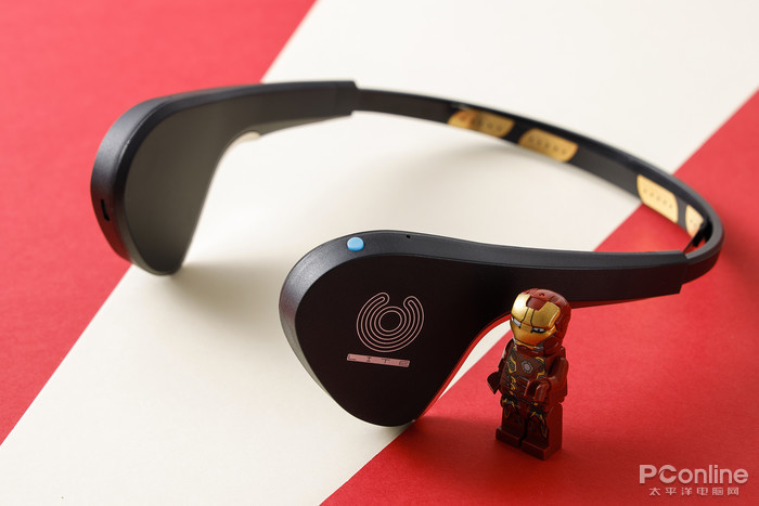 UMind Lite意念机外形上有点像耳机,但是佩戴起来就不是耳机那样戴,通过长按3秒蓝色按钮就能开机,还配备Micro USB接口。
