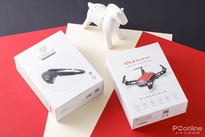 红色外包装,加上全英文的说明,让这款UDrone无人机充满神秘感,打开外包装就有两个独立包装盒,一个是UDrone无人机主体,另一个是UMind Lite意念机,两个硬件都由UDrone APP来控制。实际上,UDrone无人机可以单独用APP来控制,而无需连接UMind Lite意念机。