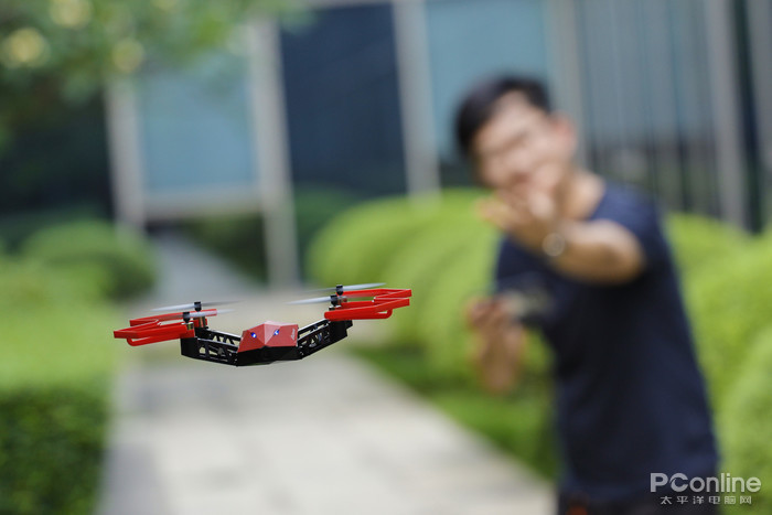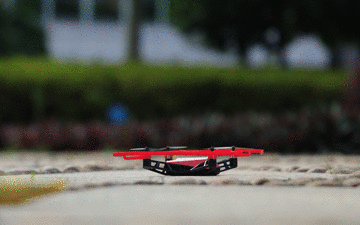 起飞没有过多的犹豫,直接迅速飞起来,然后很平稳地悬停在原地,看来这个电机设计已经非常成熟。降落的时候就有点猛了,直接掉在地上,不过机身够轻,产品质量过硬,也没什么大碍。