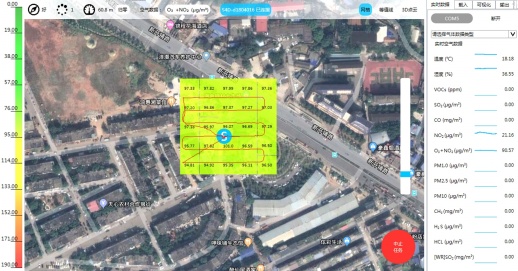 5月21日,长沙市天心区黑石铺街道一力物流园区附近空气示范区上空,一架四旋翼无人机在150米高空来回盘旋巡航,地面上,两名技术员将屏幕上俯览图像实时记录下来。“无人机上搭载的设备,能将空气中碳化物和硫化物的指标参数实时传回地面,方便我们锁定监控区域的污染源。”黑石铺街道办事处副主任王帆说,今后,街道将在环境执法中常态化使用无人机巡查。