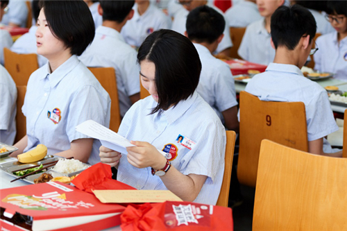 这是一个神奇的袋子,也是一个充满爱意的袋子,内含一张每个班的班主任写给孩子们的毕业寄语明信片,600张不同的明信片代表了每位班主任老师对学生的爱,当然最打动孩子们心得是那封厚厚的,来自每一名学生家长的手写家信。这次的信没有走煽情路线,而是减压路线。学生看完都表示没想到爸妈比自己还淡定,这样自己更有动力去轻松“敢”考了。