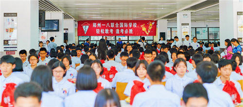600名即将参加中考的初三毕业生们,在食堂内大声喊着整齐激昂的“逢考必胜”的口号,让整个学校充满着必胜的力量。