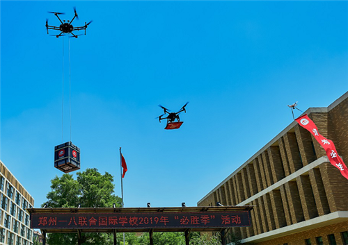 还记得那个2016年、2017年、2018年连续三年请考生吃比萨的郑州某中学校长吗?中考临近,这一次传说中“别人家的校长”又来了。2019年5月22日中午,在郑州一八联合国际学校的操场上,无人机送餐方阵不但送来了必胜客的比萨,还打出了“轻松敢考”和“逢考必胜”的条幅,用这种特别“上天”的方式为考生加油。校长和同学们开心的接过无人机送来的比萨,妥妥体验了一把创新科技的能量。