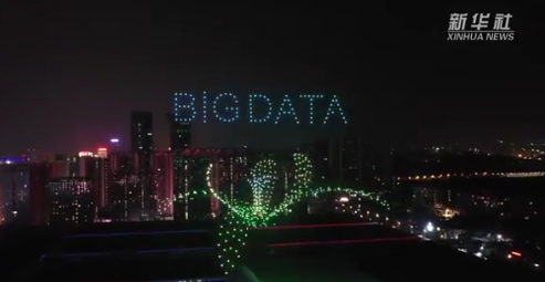 526架无人机整齐摆放,随着工作人员按下启动按钮,所有无人机顿时腾空而起,盘旋在贵阳国际会议展览中心上空,呈现出“地球”、“数博会LOGO”、360°立体“爽”字等科技感十足的炫酷画面。