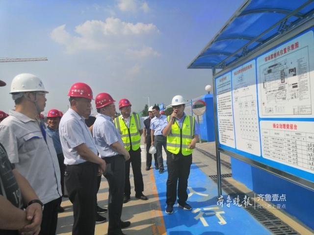 济南市住房和城乡建设局局长吕杰和副局长武兆军,各开发企业、施工企业、监理企业等相关工作人员集体观摩参观,中建一局的工作人员全程解说,重点介绍山东省肿瘤医院创新转化平台的扬尘防治亮点。