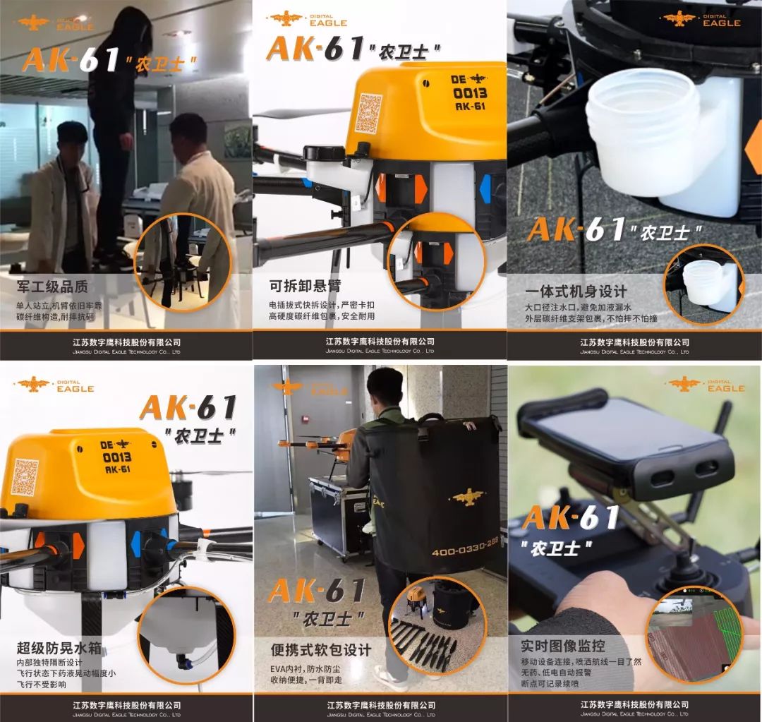 劳作辛苦,高温劳作更是难上加难,那么为什么不选择数字鹰AK系列植保无人机减轻负担呢?区别于其他品牌的植保无人机,数字鹰科技AK系列植保无人机采用模块化结构设计,机臂可拆卸,便于运输与安装的同时,更解决了后期“大动干戈”的维修问题。