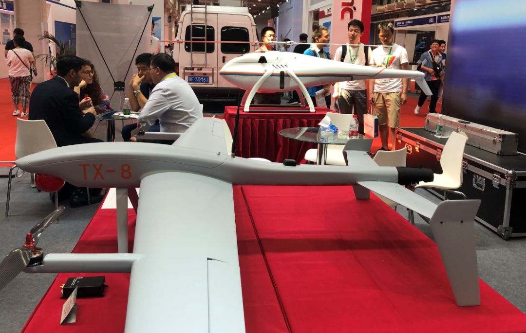 此次博览会,天峋创新展出了四款无人机,UniCorn无人直升机、天蝠多旋翼无人机、鸭式垂直起降无人机和三轴倾转旋翼产品,其中鸭式垂直起降无人机和三轴倾转旋翼产品初次公开亮相,全球首发。