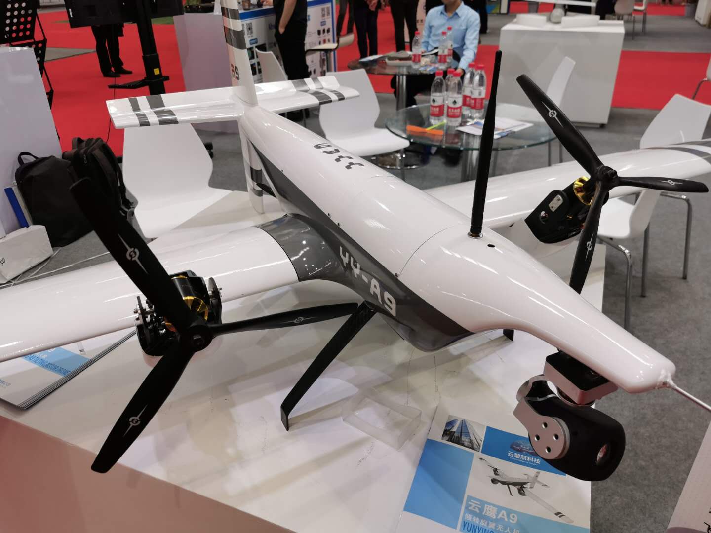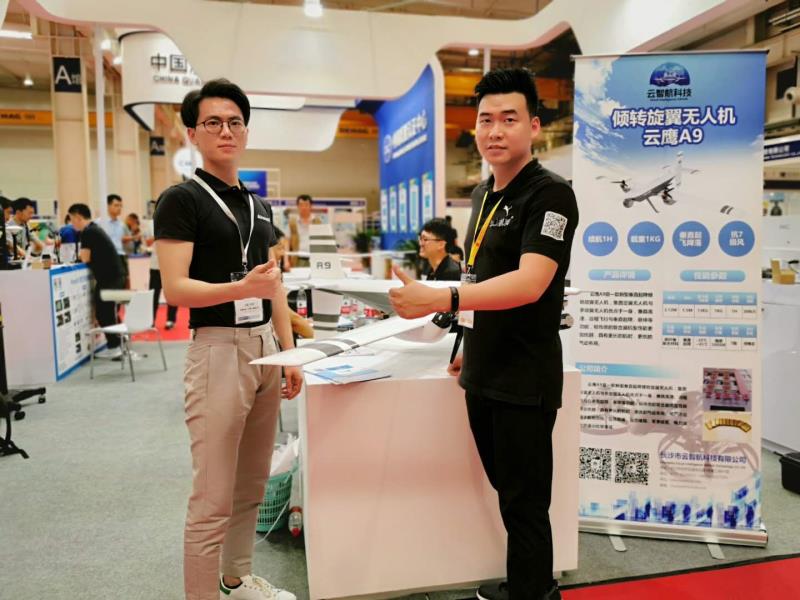 记者现场走访到长沙云智航科技有限公司(以下简称云智航),据了解云智航是由国防科技大学的创业团队成立,专注于世界新型航空器的研发。此次参展的产品是云智航倾力打造的新型垂直起降倾转旋翼无人机--云鹰A9倾转旋翼无人机。