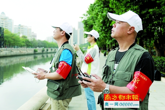 如果不是有制服、队帽和肩章的区别,你不会发现他们的特殊之处。他们是广州群防共治的一支特色队伍:空中巡防队。边玩边巡视的队伍从最初的几十人发展到现在的500人,已经在黄埔区名声显露。4月24日,他们入选首届“广州街坊”品牌榜并获得表彰。