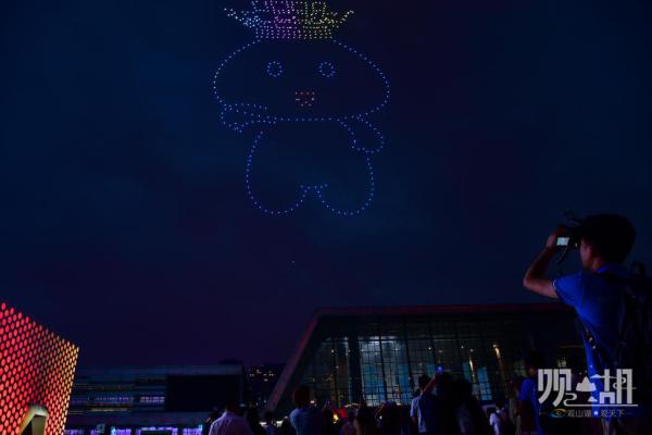 “三、二、一,起飞!”随着工作人员按下启动按钮,526架无人机顿时腾空而起,以人类起源的舞步开场、到机器人时代的进化、再到立体地球展现数据链接世界,紧接着,数博会logo、兰花、“爽”字、数小博、“数字之光,追梦未来”、“我爱贵阳”等元素在无人机的不断变换中逐渐呈现。