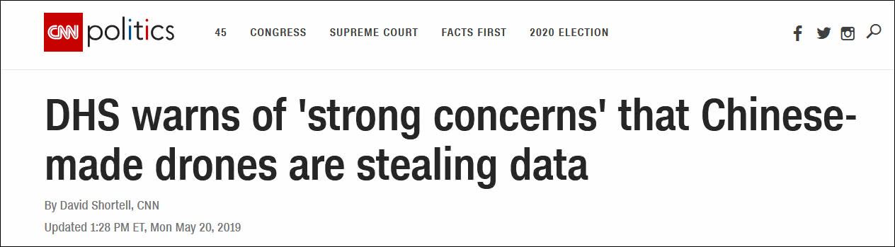 CNN说,美国国土安全部在警告中称,“美国政府对于任何技术产品将美国数据带回集权国家感到强烈担忧”,宣称这些国家有可能让其情报机构无约束地接触到美国的数据。该警告尤其提到中国,和中国产无人机。