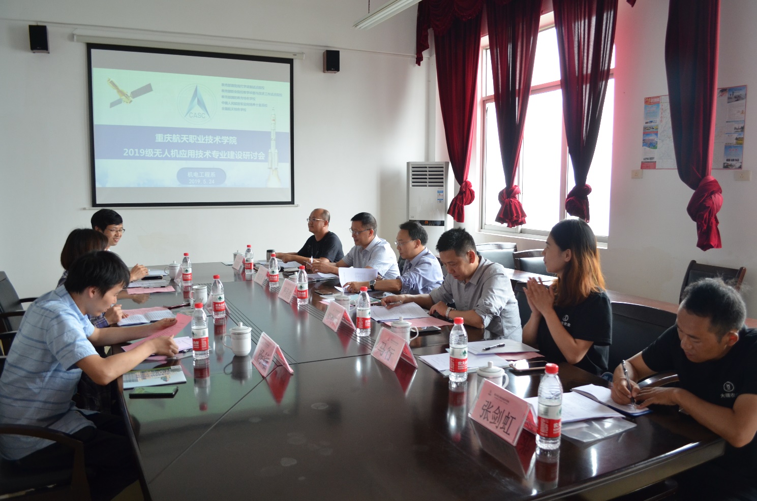 2019年5月24日,无人机应用技术专业建设暨人才培养研讨会在我院江津校区9教会议室顺利召开。出席会议的有:全国优秀科技工作者、全国无人机健康有序发展调研组专家成员、无人机飞行控制系统应用与技术四川省高校重点实验室执行主任、成都工业学院无人机产业技术研究院常务副院长严月浩;重庆市无人机产业协会副会长兼秘书长、重庆飞狐航空科技有限公司总经理胡海波;重庆天之聚科技有限公司总经理郭昭彬;重庆领直航科技有限公司肖乾波;重庆天之聚科技有限公司无人机教官冯昌荣、张剑虹、马行;机电工程系主任刘昭琴;无人机应用技术专业负责人吴道明;无人机应用技术专业教师杨雄等参与了此次会议。