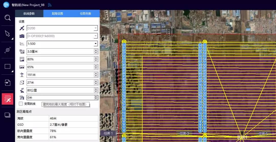 无人机管家智航线支持建筑物高度输入及航高限制、重叠度提醒